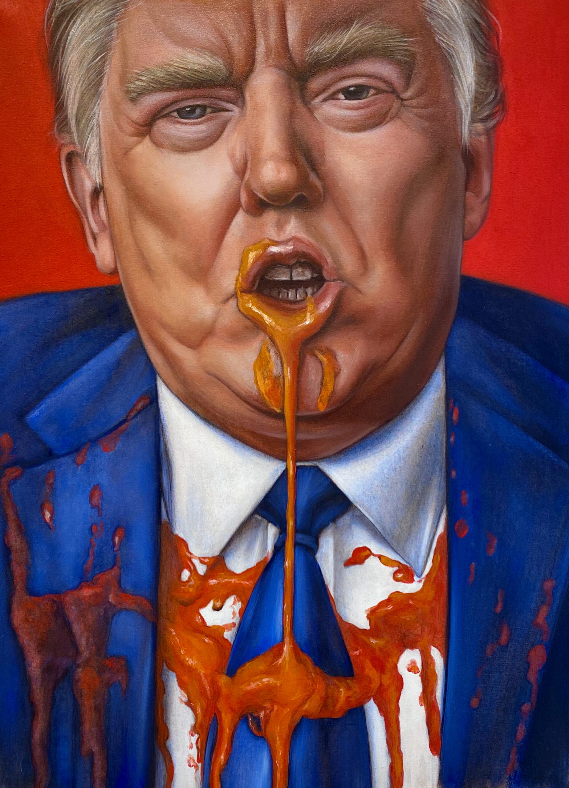 In „Schockwellen“ verarbeitet de Vries die Ära Donald Trumps. Seit 2017 hält er die politischen und gesellschaftlichen Erschütterungen dieser Zeit in monatlichen Porträts fest. Was als Dokumentation begann, wurde zu einem künstlerischen Kommentar über Macht, Polarisierung und die Wirkung von Populismus – ein visuelles Archiv eines prägenden Kapitels der Gegenwart.